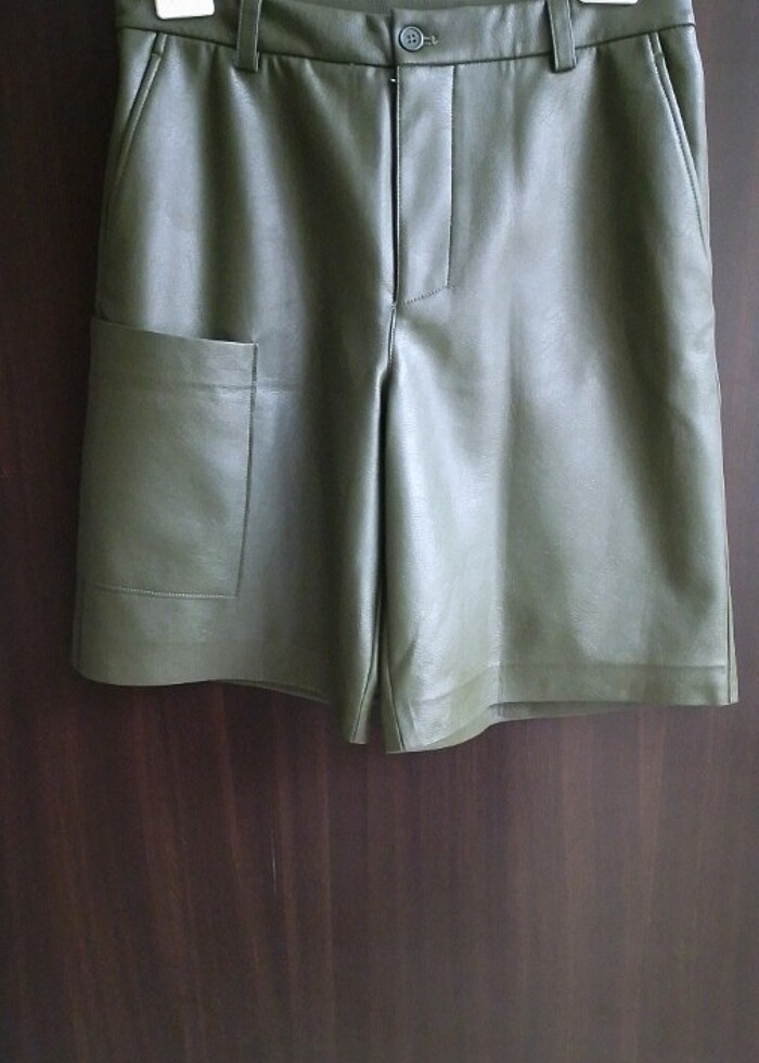 Bayan Etek tipi Şort ZARA Marka Renk Askeri yeşili yumuşak bir ürün Suni Deri harika bir model Boy 55 cm paça genişliği 35 cm bel 42 cm
