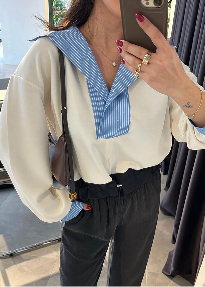 Taşlı Tasarım Sweatshirt Modal kumaş yumuşak dokulu rahat kalıp üründür.; M beden en 59 cm boy 60 cm L beden en 63 cm boy 60 cm