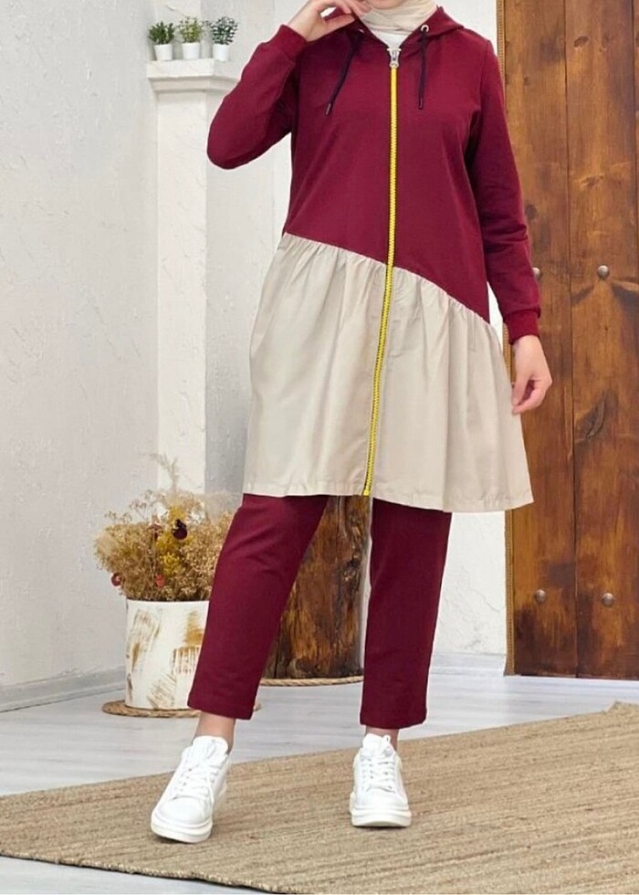 Birinci sınıf pamuklu penye takım pantolon u beli lastikli cepli şık piknik ta parkta gündelik hayatta rahatlıkla kullanabilirsiniz tuniğin alt kısmı krem yeri saten detaylı 44 beden