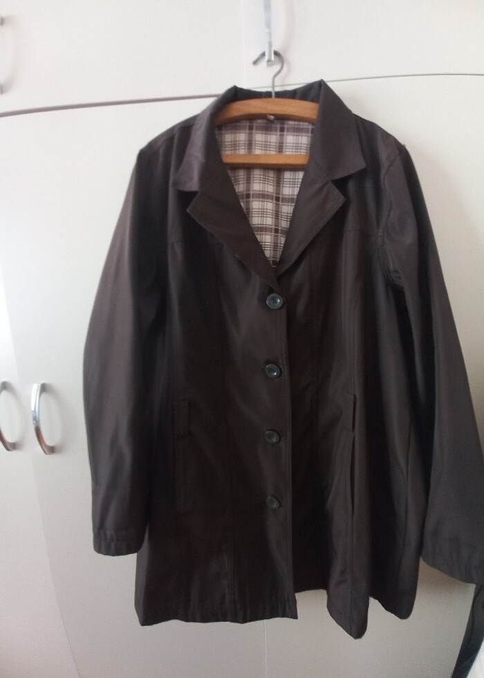 Sayili giyilmistir.kolu uzun geldigi icin kivrilarak giymistim iz yapmis ic cebinde delik vardir kullanima engel degildir.xxxl uyumlu diyelim olculere gore bakiniz kahverengidir kemeri mevcut d3gil