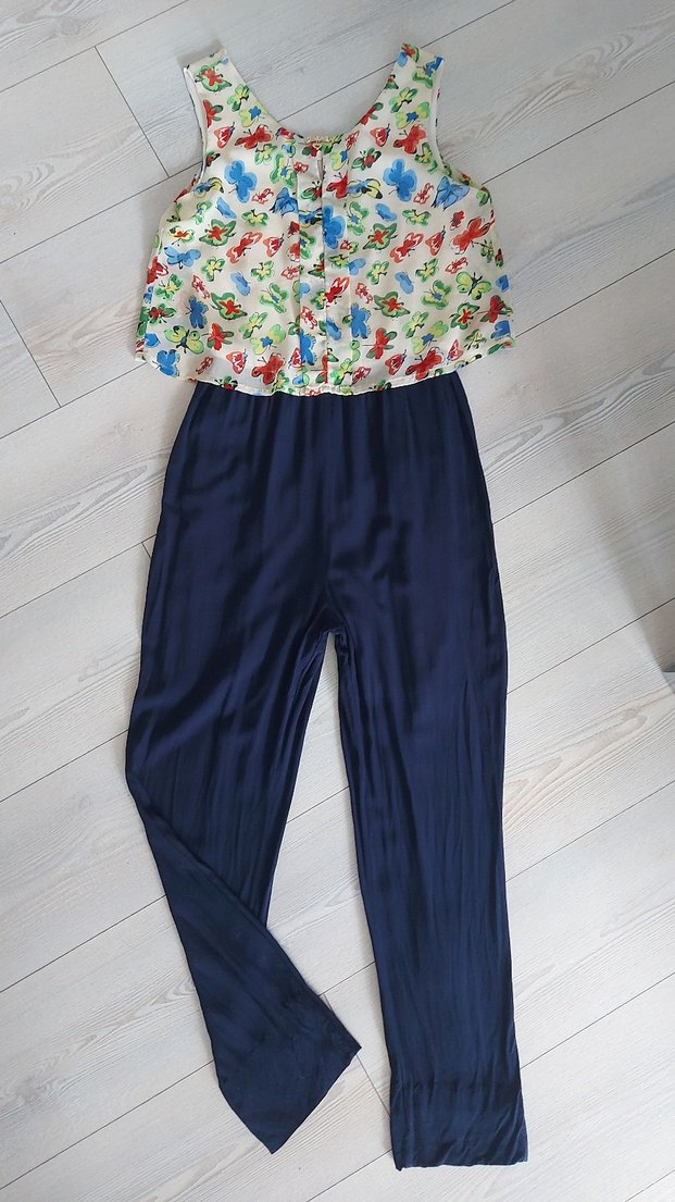Ürün sayılı kullanılmış olup sorunsuzdur. Üstte pantolon üstüne şifon bluz giyilmiş gibi duruyor. Çok rahat ve şık bir tulumdur. Markası Parkhande.