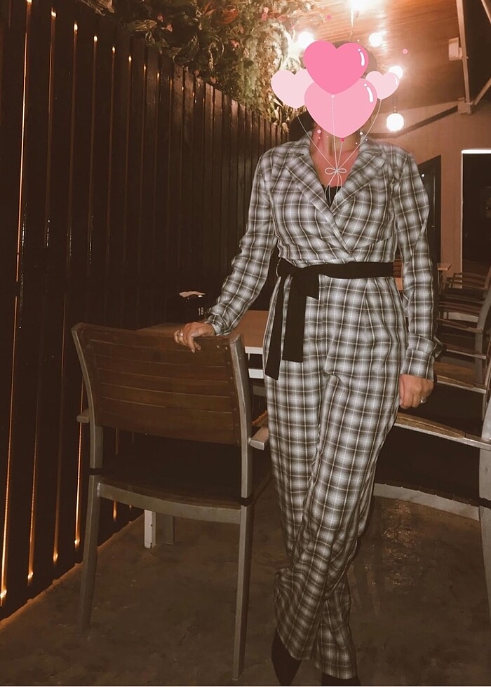 Kumaş , kemer detaylı kruvaze yaka bayan tulum . Çok temiz iki kez giydim