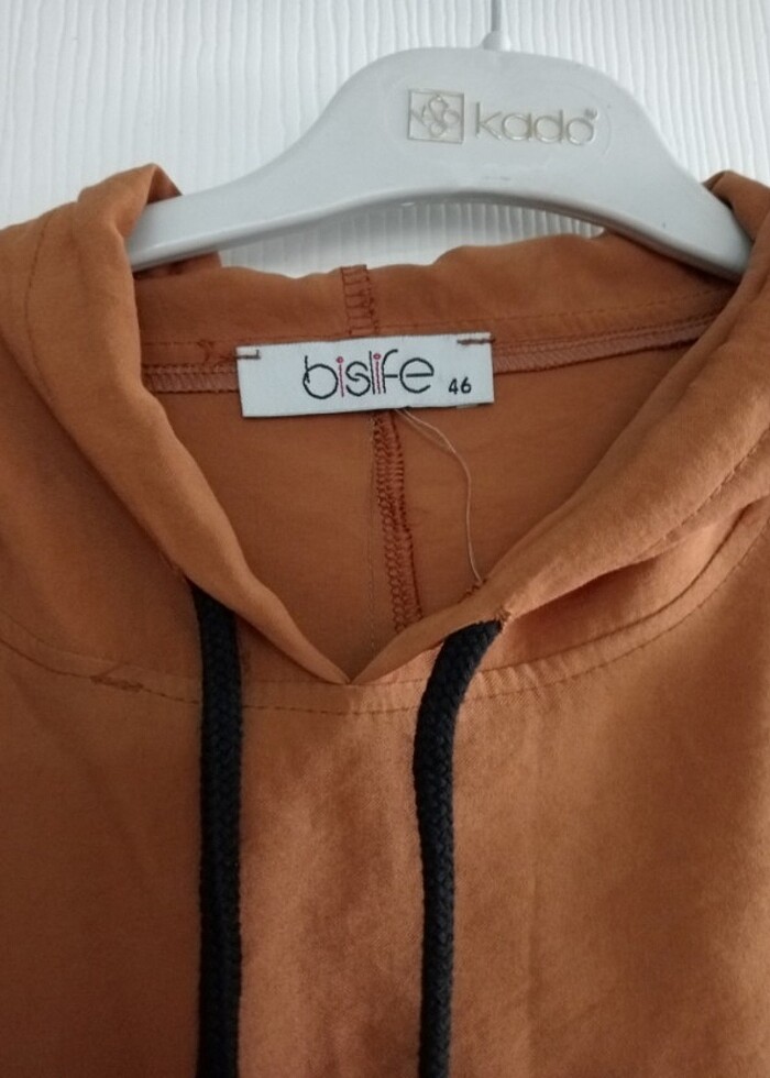 Bayan tunik 46 beden. Taba rengi. Kapsonludur. Sık spor bir tuniktir. Bir iki kere anca kullanıldı hiçbir hasarı yoktur. Yenidir