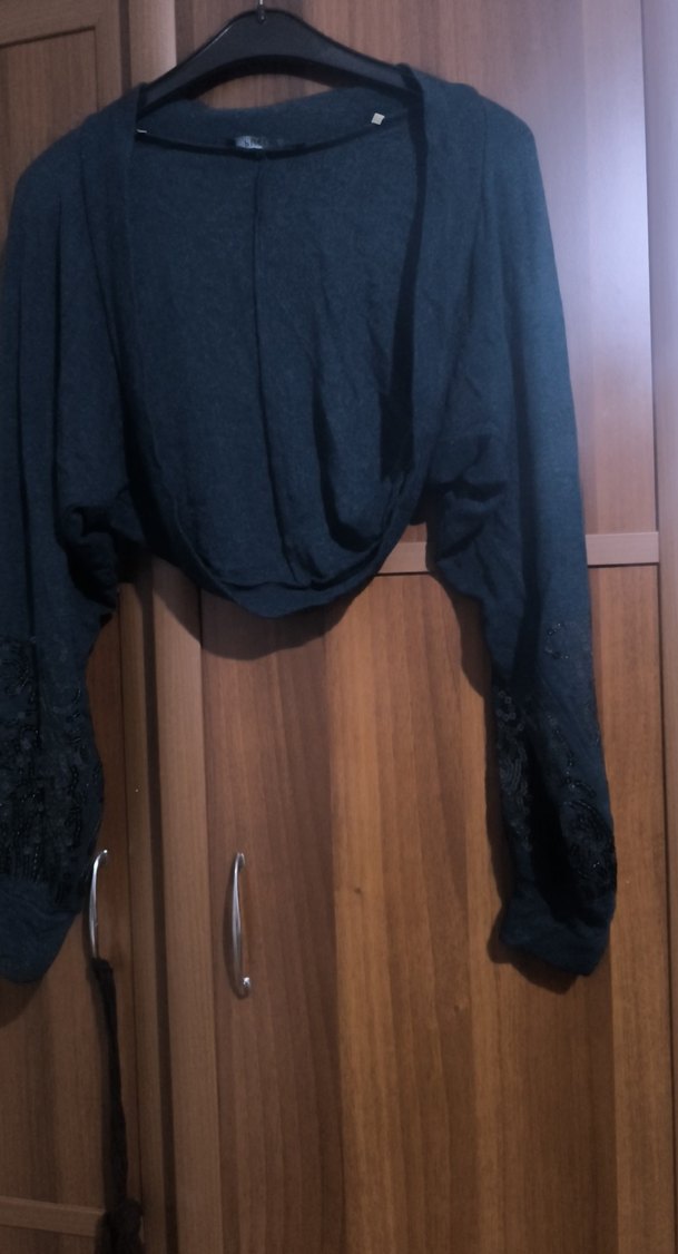 Yeşil renkli bayan penye uzun kollu mini cepken