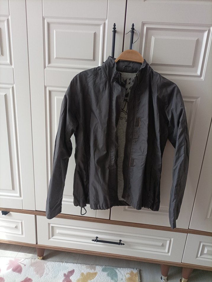 Gri renkli, bayan yağmurluk sıfır ayarında