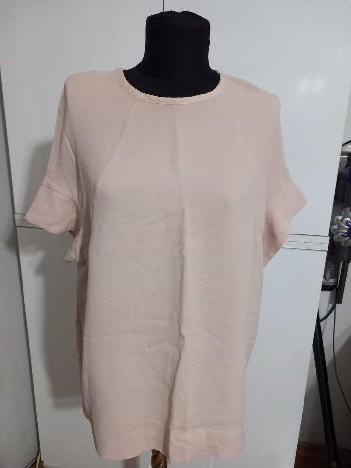 Pudra renkli, yuvarlak yakalı ve kısa kollu Regular kesim ve yumuşak sentetik kumaştan yapılmıştır, günlük kullanım için uygundur.