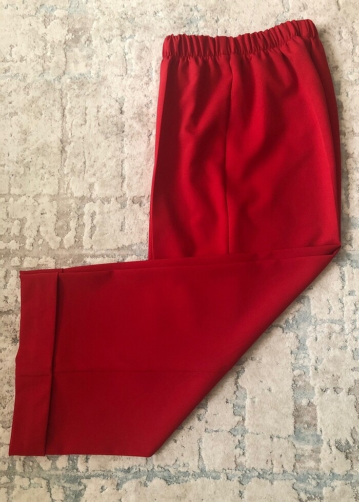 Sadece iki kez giyildi.Bol paça kırmızı yazlık bayan pantolon