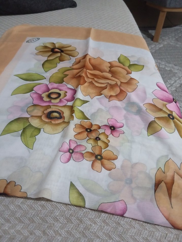 Bej pastel renkli, drapeli çiçek desenli kadın fular. Yumuşak sentetik kumaştan yapılmıştır ve vintage, bohem, retro tarzlara uygundur. tek alım fiyatıdır. ilan açtırınız