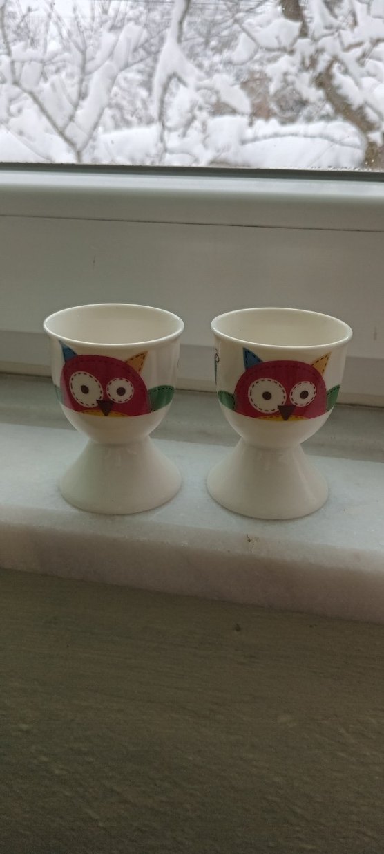 Baykuş desenli beyaz mini kupa seti