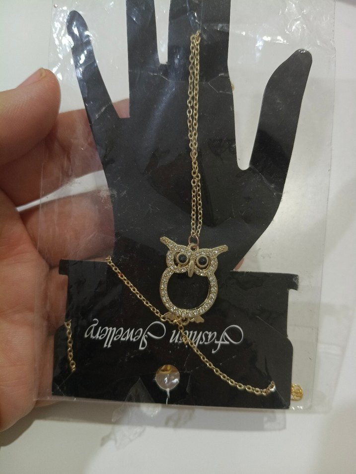 Baykuş Figürlü Zincir Detaylı Altın Renkli El Zinciri