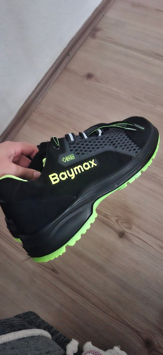 Baymax logosu bulunan, renkli desenli, bağcıklı siyah spor outdoor ayakkabısı, sıfır hiç kullanılmadı