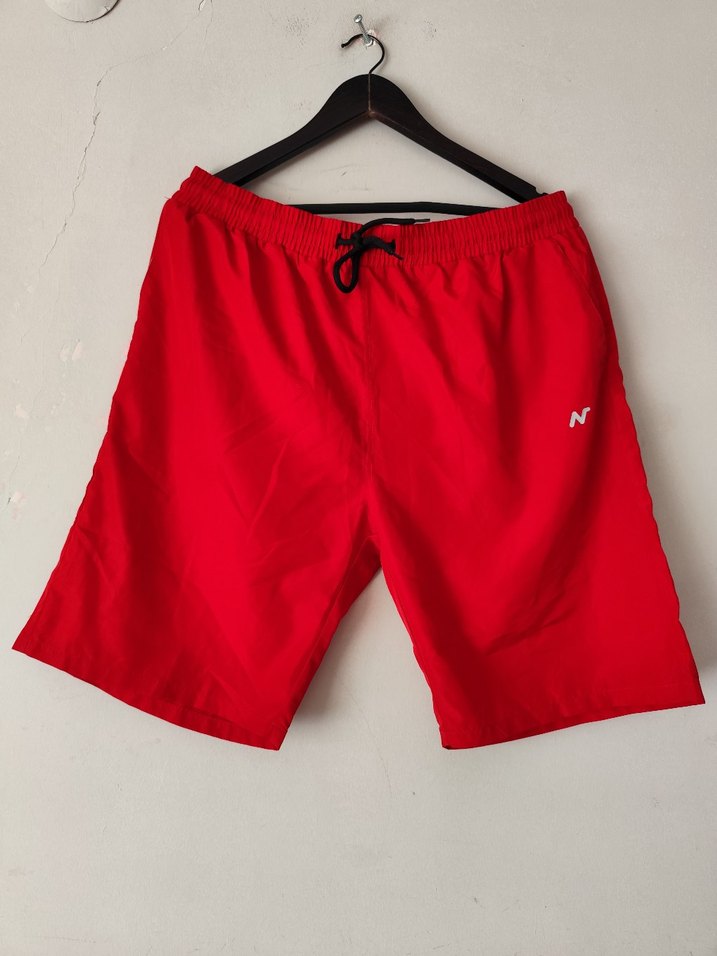 Erkekler için rahat kesim ve canlı kırmızı renkte, desensiz uzun şort. Plajda kullanıma uygun, sokak stilinde zahmetsiz şıklık sunar. Yeni kullanılmadi. Fileli. sikintisuz
