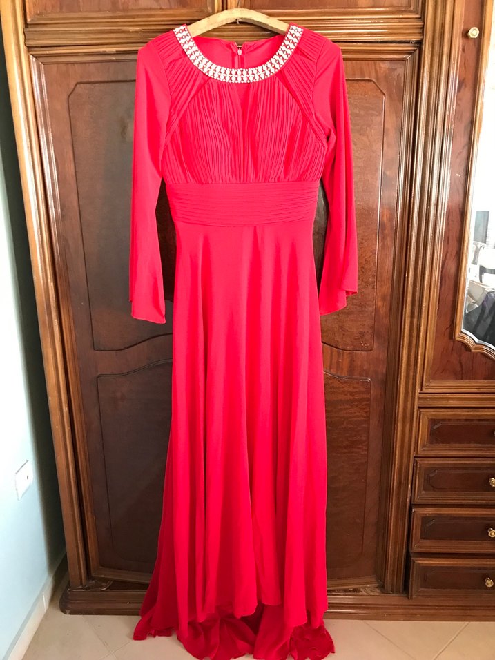 Bayrak kırmızısı tesettür abiye elbise 40 beden