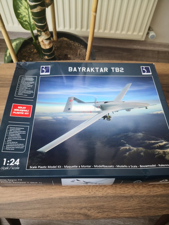 Bayraktar TB2 dronunun 1:24 ölçekli, koyu gri renklerde plastik model setidir. Detaylı ve gerçekçi bir maket yapımı sunar. #drone #iha #maket