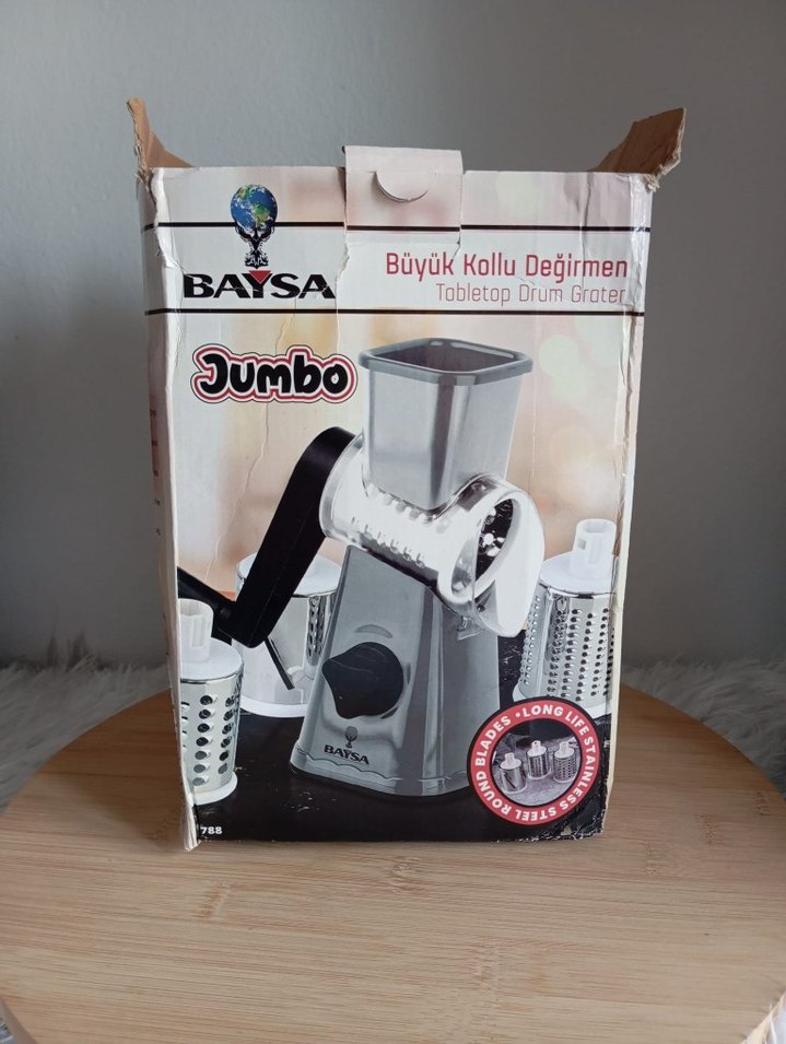 BAYSA gri renk büyük kollu masa üstü tambur rende, dayanıklı ve kullanışlıdır. Farklı rende tamburları ile çeşitli mutfak işlerine uygundur.