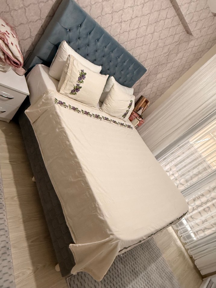 Yatak odası takımı olarak, Yatak başlığı, yatak, ve baza dahildir. Başlık 2.15m Yatak eni 1.60m Yatak ortopediktir. Temiz ve az kullanılmıştır.