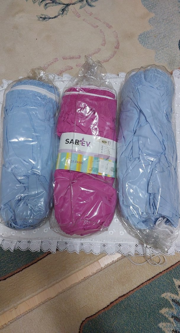 SAREV marka pastel mavi ve pembe renkli baza fırfırı Pembe çift kişilik maviler tek kişilik bazalar için.