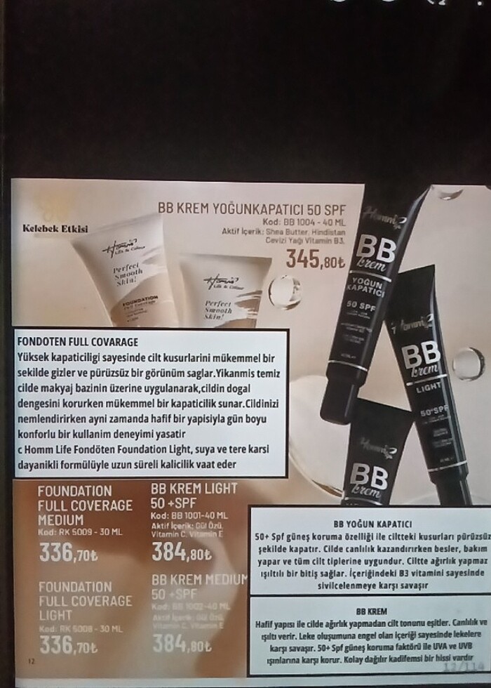 BB Krem yoğun kapatıcı 40ml (345.80)₺ BB krem Light 50 +SPF 40ml (384.80)₺ BB krem medium 50+SPF 40ml (384.80)₺ Foundation full coverage medium 30ml (336.70)₺ Foundation full coverage Light 30ml(336.70)₺ Marka homm bitkisel