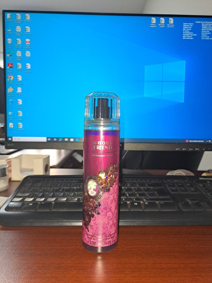 Ghoul Friend kadın parfümü, 236 ml sprey şişede, üzeri çiçek ve meyve desenli etiketle sunuluyor.Sıfırdir.