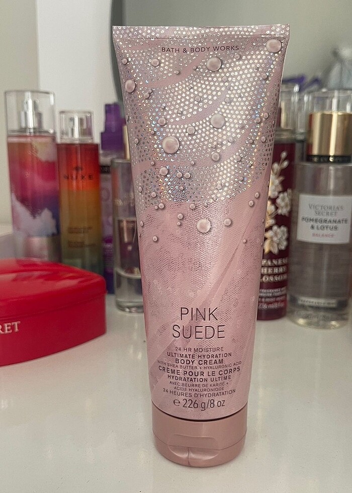 Bath And Body Works Pink Suede Yoğun Nemlendiricili Vücut Kremi. Yanlışlıkla sepetimde iki adet eklemişim o yüzden satıyorum. Çiçeksi pudralı bir koku. Hiç kullanılmadı. Full doludur. 226 gr. Nasıl kokuyor: süper şık bir takım elbise kadar tatlı ve pürüzsüz. Koku notaları: kızarmış meyveler, kadife şakayıklar ve yumuşak pamuk