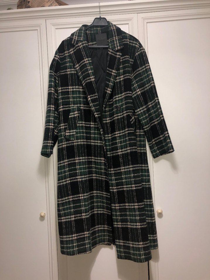 Be Blue Düğmeli Yeşil Ekose Uzun Kadın Kaban