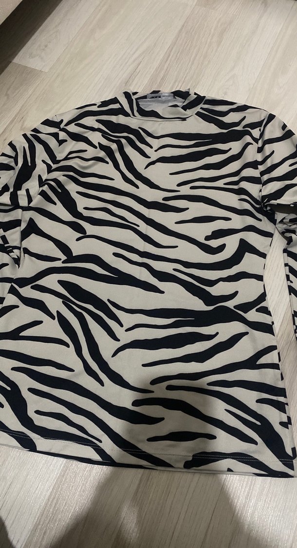 Kadınlar için gri zebra desenli, uzun kollu, balıkçı yaka, sentetik kumaştan yapılmış, günlük kullanıma uygun, sokak stili uyumlu, vücuda oturan bluz.
