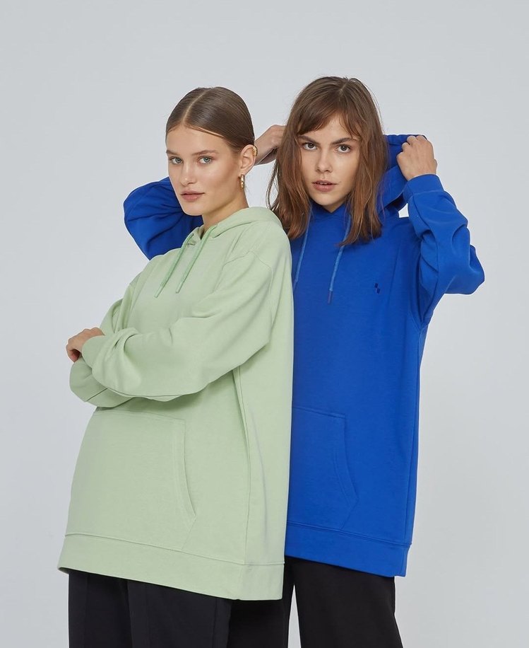 Tertemiz, yumuşacık pamuklu kumaştan kapüşonlu sweatshirt. Tam mevsimlik kusuru yok. Nil yeşili rengi. Boyu 74 cm