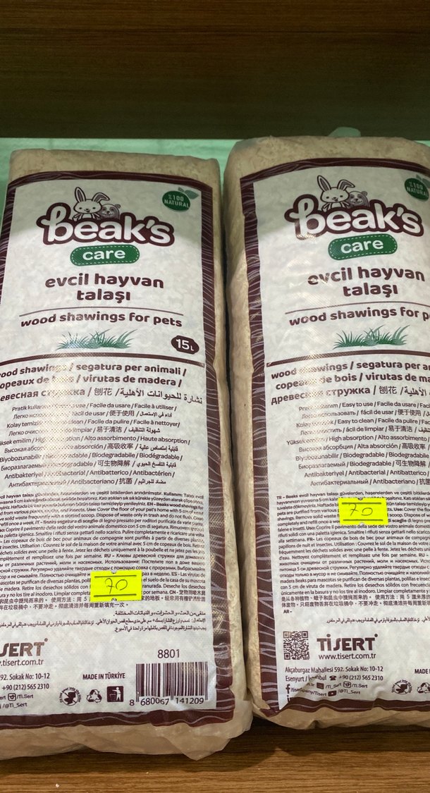 Beak's evcil hayvan talaşı, 15 litrelik paketlerde, doğal ve biyobozunur bir yatak seçeneği sunar.