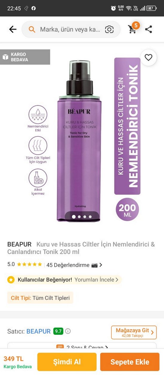 BEAPUR kuru ve hassas ciltler için nemlendirici ve canlandırıcı tonik, alkolsüz formülüyle tüm cilt tiplerine uygundur.