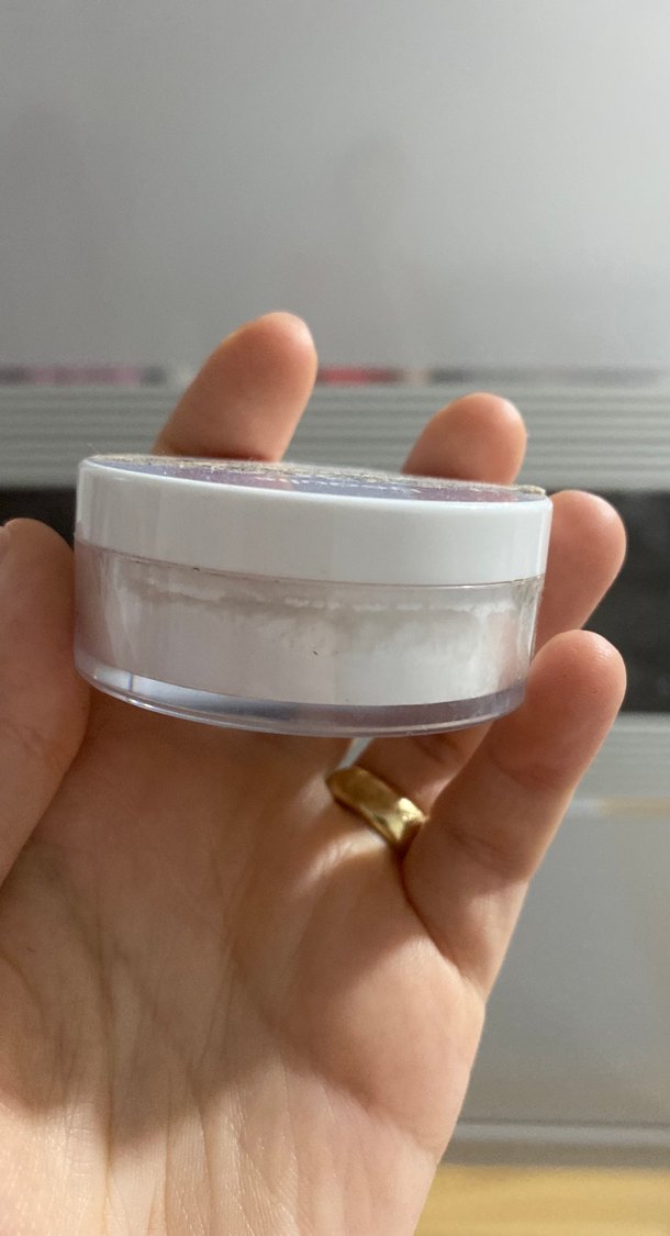 Küçük yuvarlak kapta beyaz kozmetik pudra.