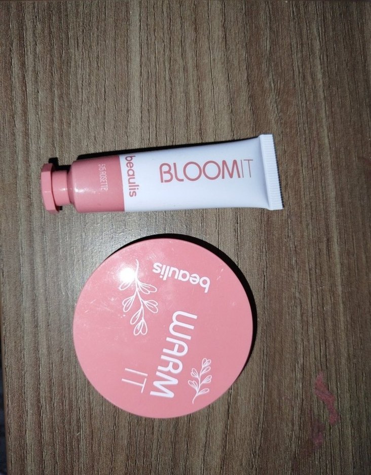 beaulis BLOOMIT seti, pastel pembe allık ve uyumlu krem allık içerir. Yumuşak ve sıcak tonlarla doğal bir görünüm sağlar.