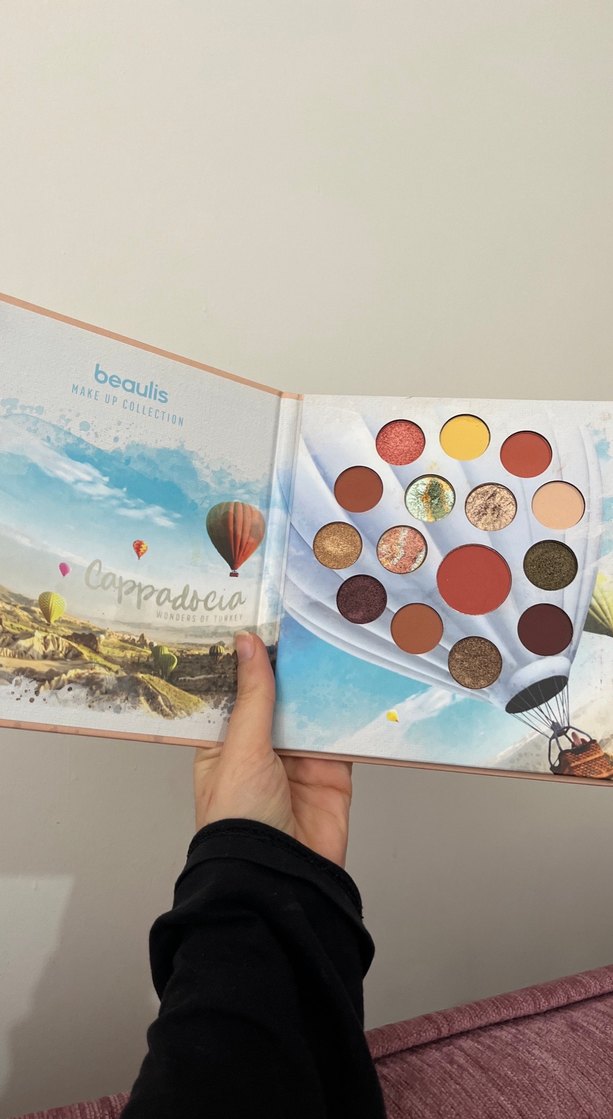 Beaulis Cappadocia far paleti, camel tonları ve ışıltılı dokular dahil çeşitli açık ve canlı renkler sunar. Mat ve simli dokularla zengin seçenekler sağlar. Pigmenti güzel hiç kullanılmadı.