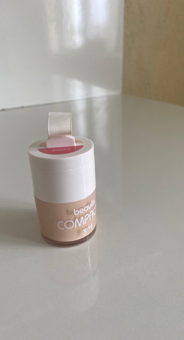 Bej pastel tonlarda, 3'ü 1 arada formüle sahip kompakt pudra. COMPA, beal yazısı bulunur. Pürüzsüz kapatıcılık sağlar.