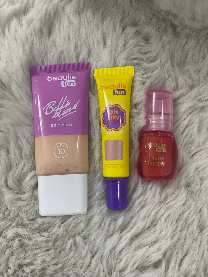 Beaulis Fun makyaj seti, SPF 10 özellikli BB krem, renkli dudak balsamı ve küçük losyon şişesi içerir.