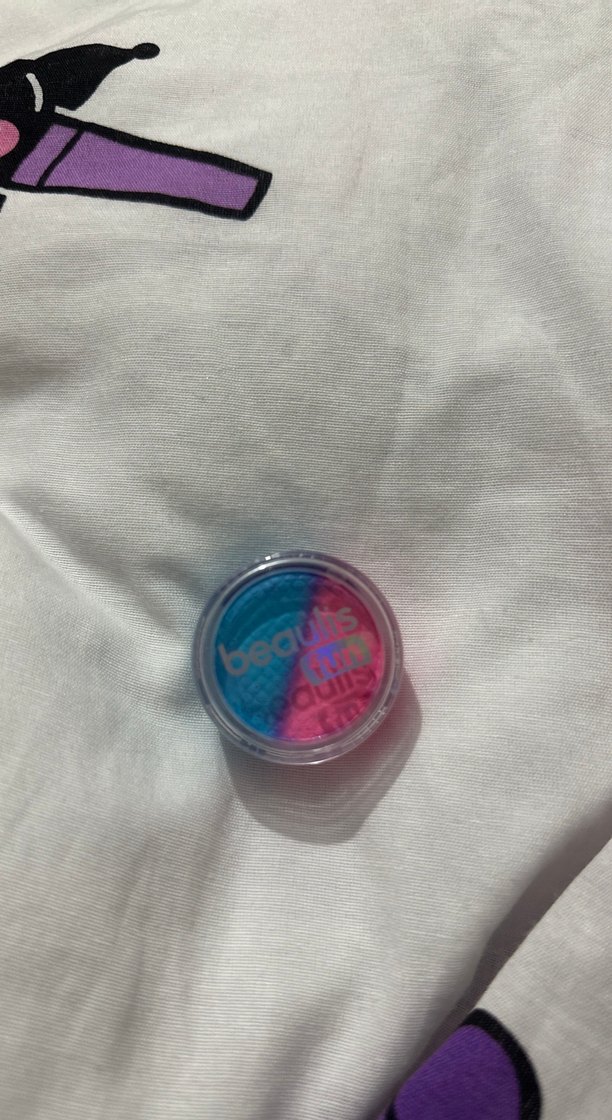 Pastel mavi ve pembe tonların karışımını içeren çok renkli toz göz farı bir kere denedim benlik değil o yüzden satıyorum