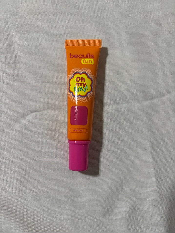 Beaulis Fun renkli pembe allık, tüpte ve eğlenceli ambalajda. Önünde 'oh my rosy' yazısı bulunur.