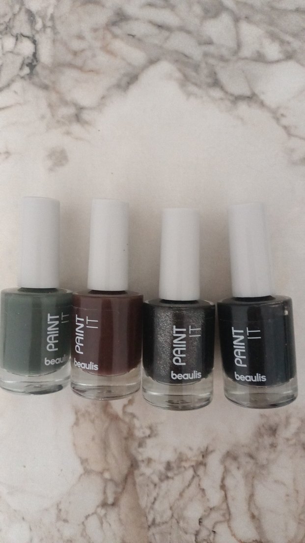 Beaulis marka koyu bej tonlarında, şık ve zarif bir görünüm sağlayan dörtlü oje seti.