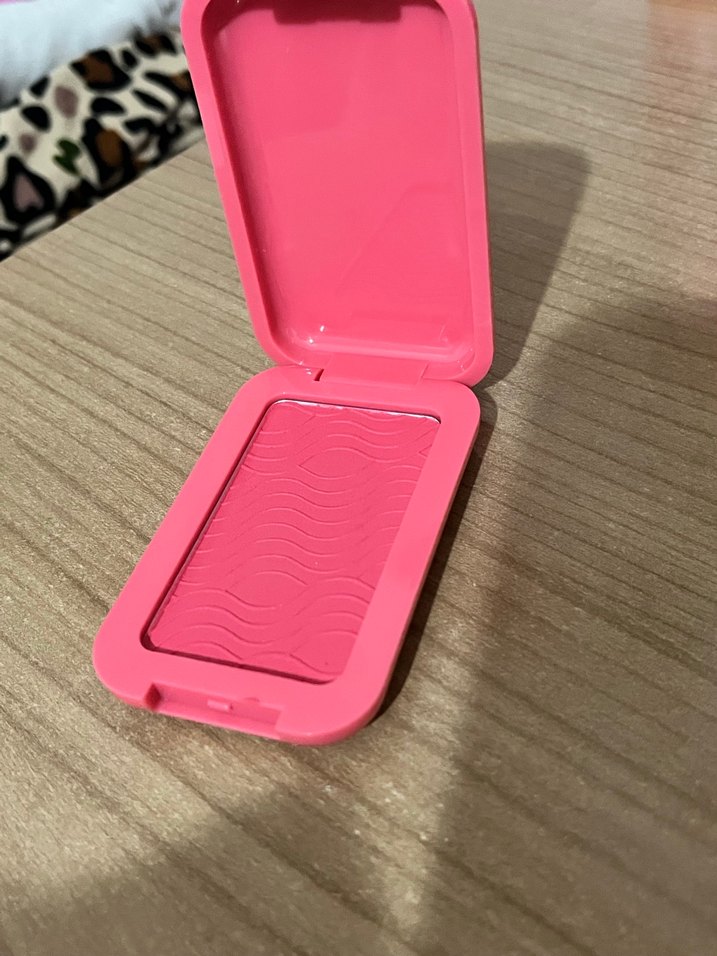 Dalgalı dokulu, pastel pembe renkte allık, kompakt kutuda sunulmuştur.