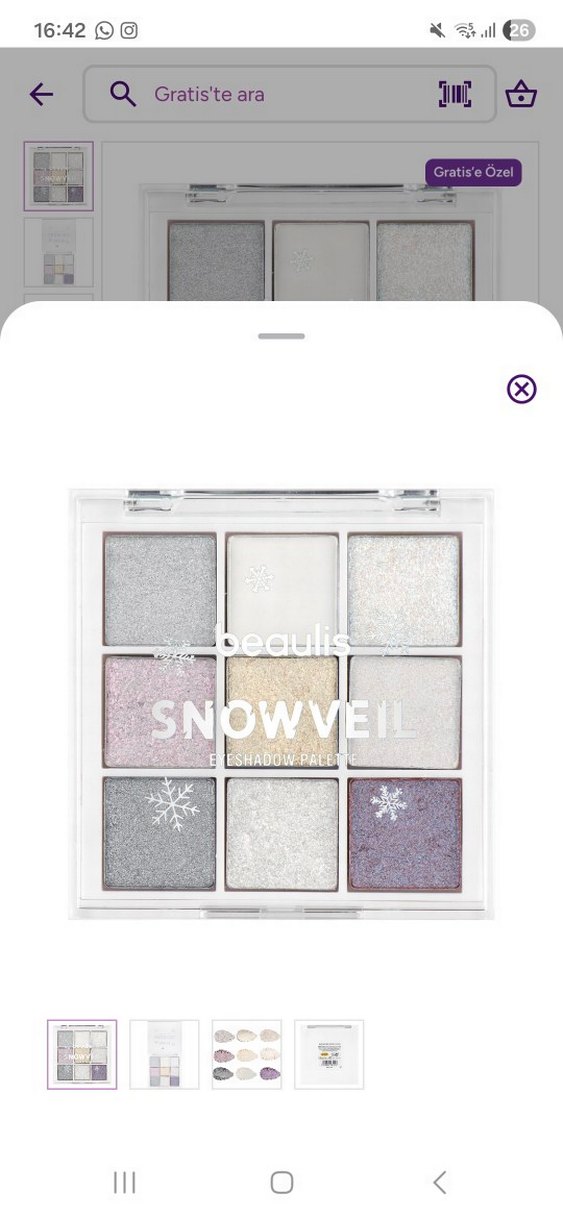 2.fotoğrafta gösterilen iki far kırıktır. Beaulis Snow Veil göz farı paleti, beyaz ve gümüş tonlarında dokuz açık ve canlı renkten oluşur. Parlak bir görünüm sağlar. ❄️