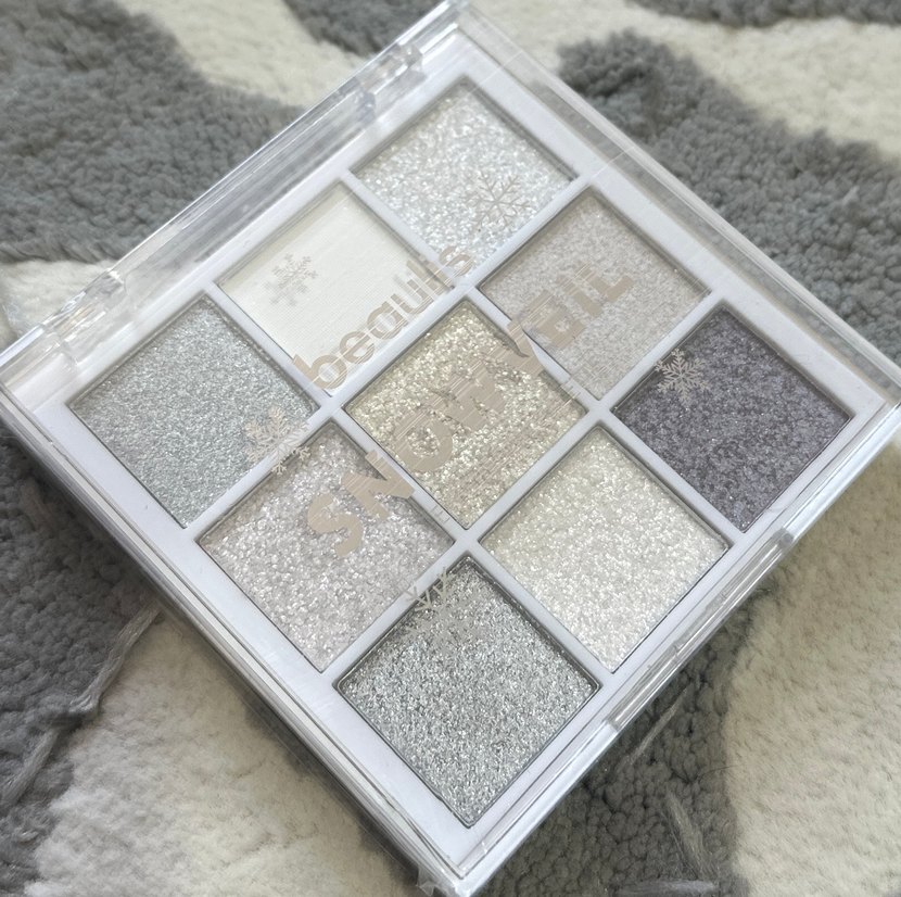 Gri ve beyaz tonlarında ışıltılı far paleti, göz makyajınıza parlaklık katmak için ideal. ✨