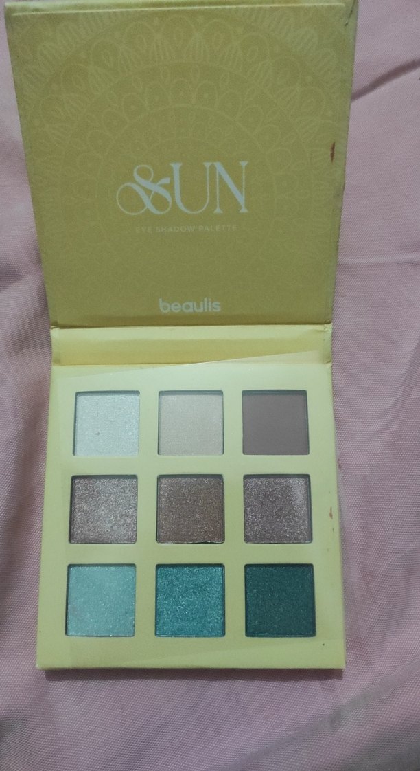 Beaulis &UN göz farı paleti, açık bej ve canlı renklerden oluşan dokuz ton sunar, mat ve ışıltılı dokulara sahiptir.