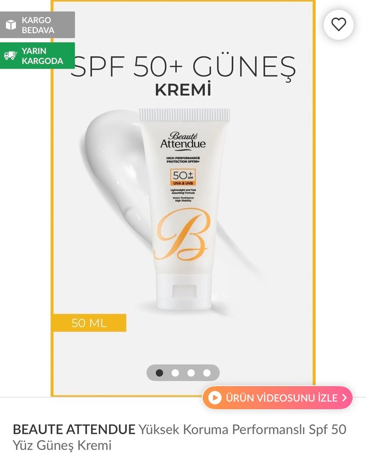 Beaute Attendue SPF 50+ Güneş Kremi 50 ml