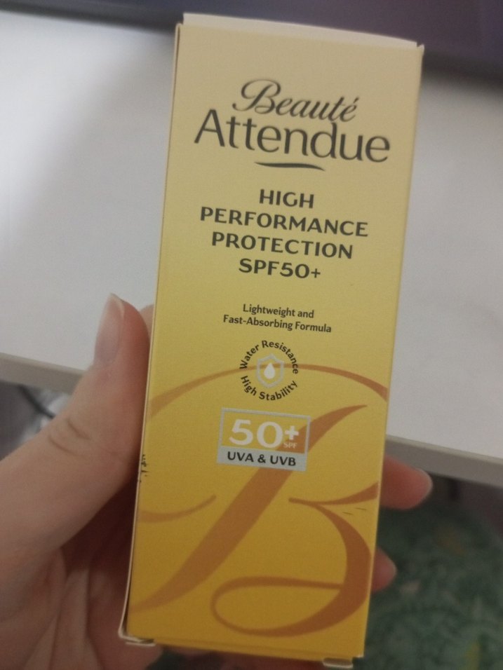 Beaute Attendue, hafif ve hızlı emilen formülüyle SPF 50+ UVA ve UVB koruması sağlar. Suya dayanıklı ve yüksek stabiliteye sahiptir. ☀️