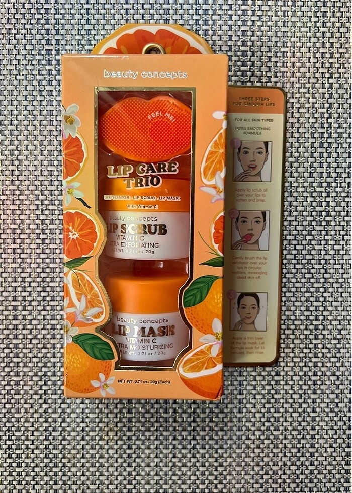 Exfoliator-Lip Scrub-Lip mask Vitamin C.SET fiyatıdır. Dudaklarınızı yumuşatmak ve hazırlamak için dudak peelingini tüm dudağınıza uygulayın. Dudak peelingini dudaklarınıza dairesel hareketlerle nazikçe uygulayın. Masaj yaparak ölü deriyi çıkarın. Dudak maskesini ince bir tabaka halinde uygulayın. Formülün 15 dakika boyunca emilmesini bekleyin, ardından durulayın. #dudakbakimi #dudak #ciltbakimi #kozmetik #peeling #lipmask #lipscrub #exfoliator