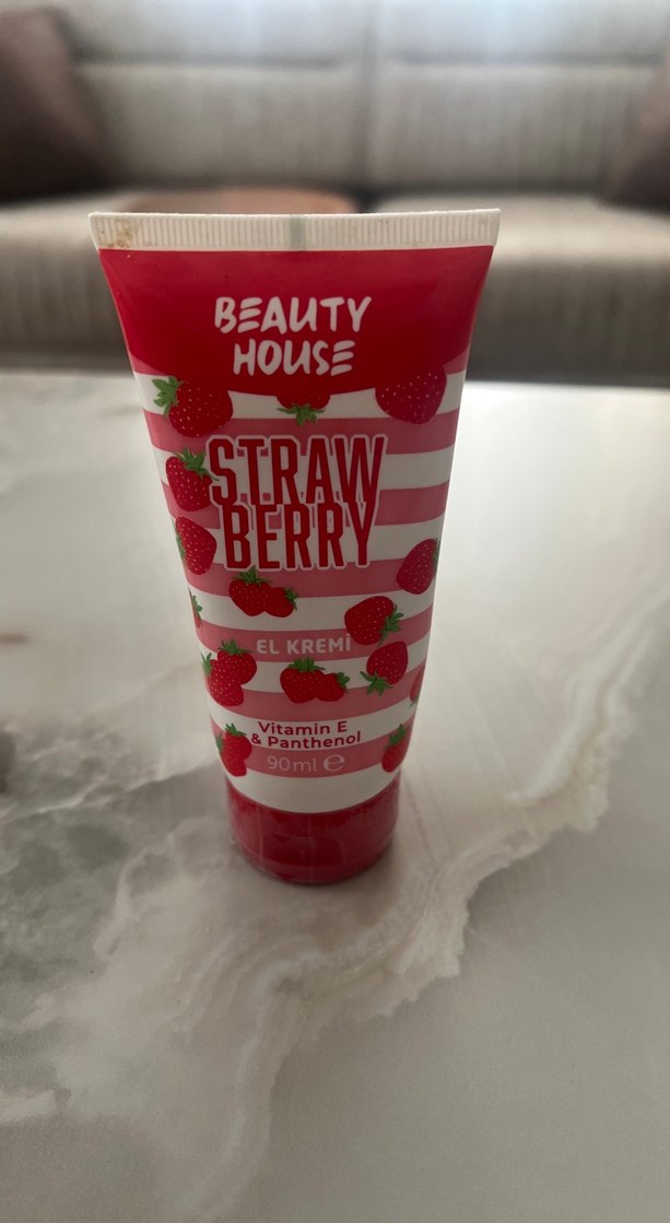 Beauty House çilekli el kremi, Vitamin E ve Panthenol içeriğiyle cildi besler ve nemlendirir. 90ml tüpte, hoş kokuludur.