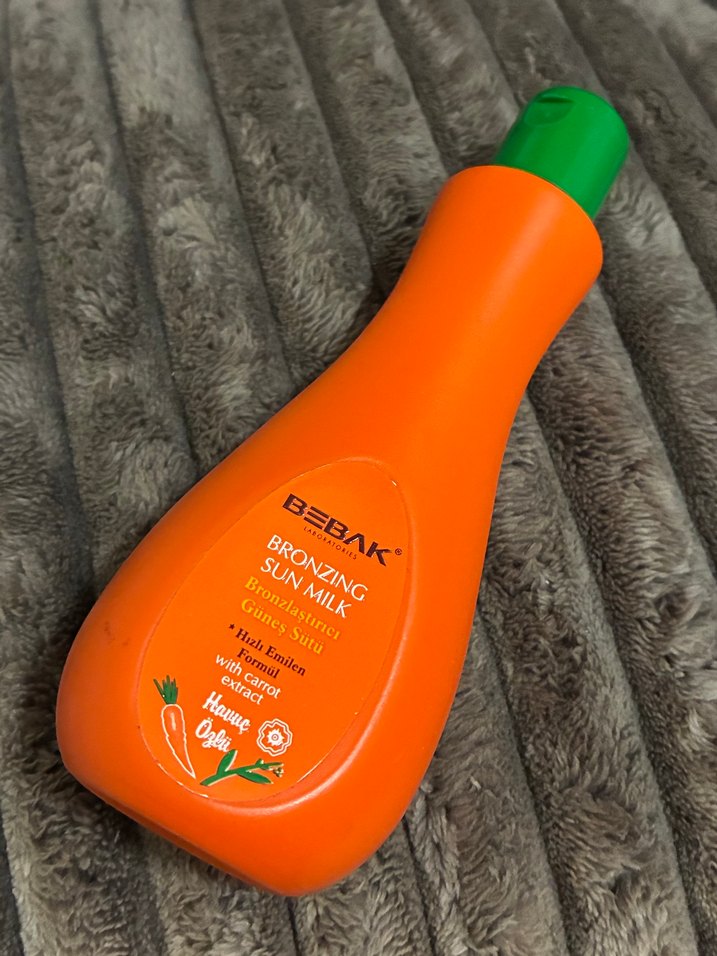 Bebak bronzlaştırıcı güneş sütü, havuç özlü formülüyle güneş koruması sağlar ve bronzlaşmayı destekler. Yumuşak süt kıvamındadır.