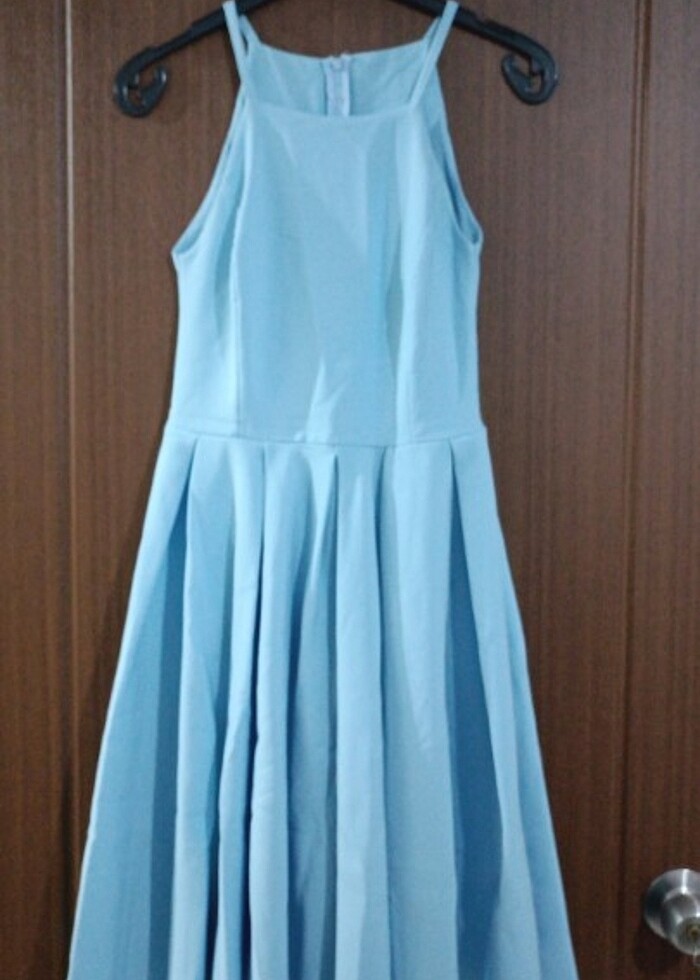 Bebe mavisi halter yaka midi elbise