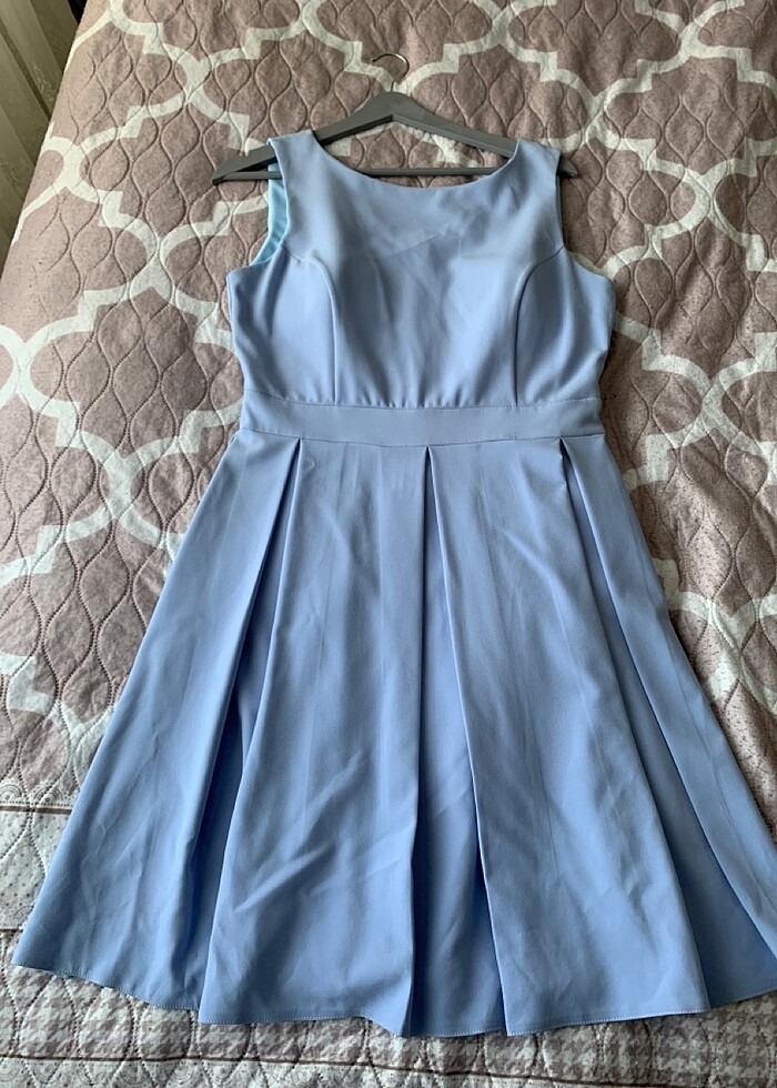 Ecrin markalı bebe mavisi kısa kollu abiye elbise 42 beden 1 defa kullandım belden kesmeli ve kilot kilo göstermez göğüs bölgesi vatkalı
