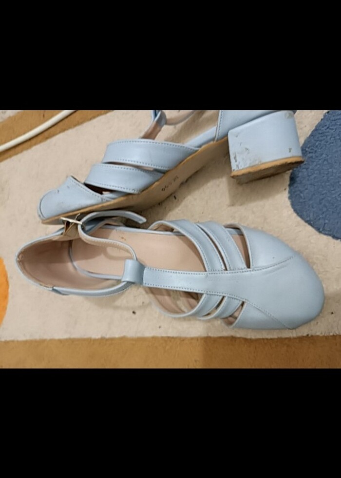 Birkaç yerinde ufak soyulma hariç hiçbir problemi yok, çok rahat şık bir ayakkabı topuk boyu 3 cm