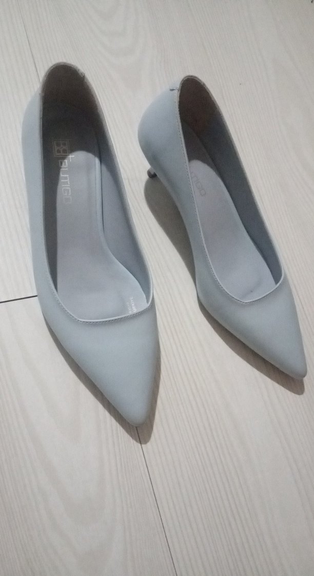 Bebe mavisi, minimalist tasarımlı, kauçuk malzemeden yapılmış stiletto topuklu ayakkabılar. Desensiz ve normcore tarzıyla ofis için şık ve rahat bir seçenek sunar. ürün bir kez ev ortamında giyilmistir